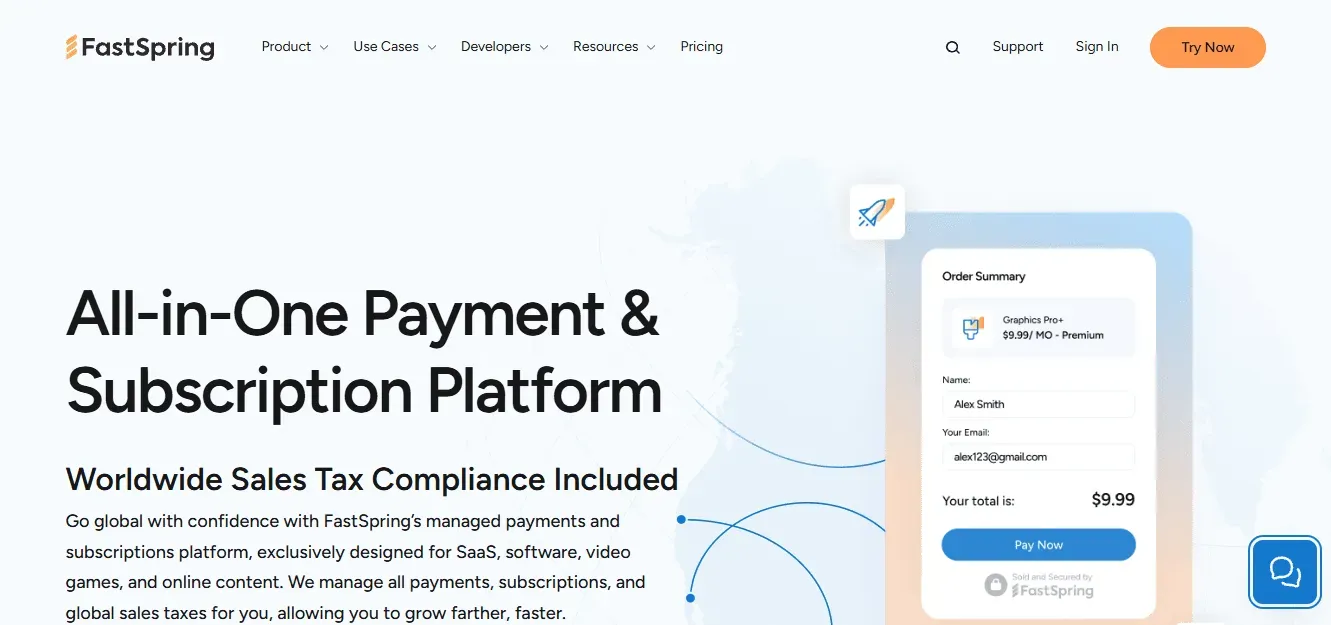 Summary: FastSpring is a full billing and ecommerce platform for digital product sellers, combining customizable checkout, secure payments, tax automation, analytics, and integrations to simplify global SaaS and digital commerce.