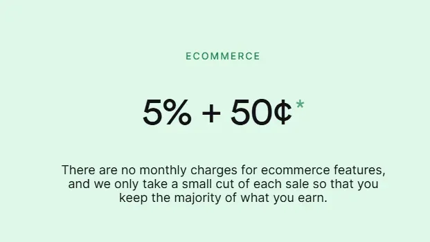 For higher-volume sellers, custom (volume) plans are available. Additional add-ons exist but at a base level, 5%+$0.50 is your only fee for core ecommerce.