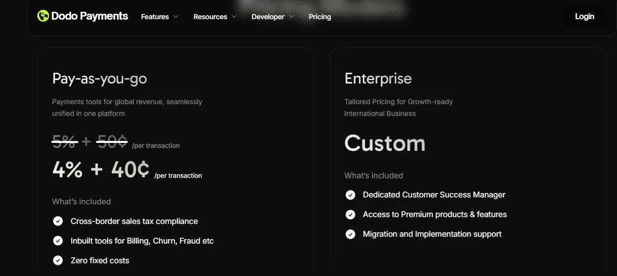Enterprise: Dodo Payments also offers Enterprise tier pricing for larger companies.